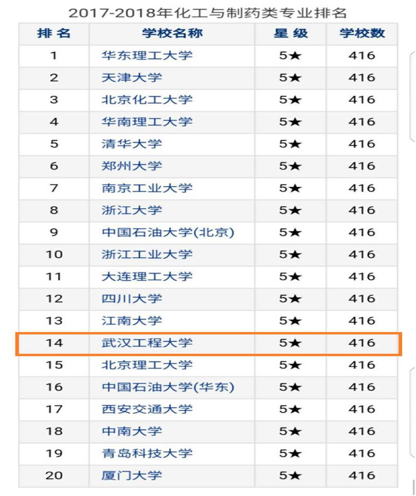 由中国科学评价研究中心(RCCSE)、中国教育质量评价中心联合中国科教评价网推出了《2017年中国大学及学科专业评价报告》,在中国大学分专业类竞争力排行榜中,英国365集团网站化工与制药类专业位居全国高校专业排名14强。