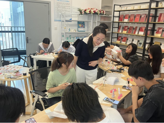 在“一站式” 员工社区,公司开展“领略涂料之美,指尖绽放光彩”美甲劳动教育实践活动。在前期水性木器漆制备活动的基础上,由公司2021级员工荣兴凤分享修甲、护甲、美甲及手部保养等基础知识,并指导员工在甲片上创作指尖艺术。