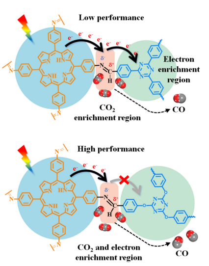 本研究通过在卟啉-三嗪COFs中嵌入醚基团,成功制备了一系列具有高效光催化CO2还原性能的COFs材料。这些醚基嵌入的COFs(TOT-TAPP、BOD-TAPP和QOB-TAPP)相较于未嵌入醚基的对照COFs,展现出显著加快的电荷传输性能和更高的光活性。实验和理论计算结果表明,醚基的引入显著提高了光生载流子的分离效率,促进光生电子在催化活性位点C=N亚胺键处的积累,从而增强CO2的吸附和还原效率。这项研究不仅为设计高性能的COFs光催化材料提供了新的思路,也为应对能源和环境问题提供有效的潜在解决方案。