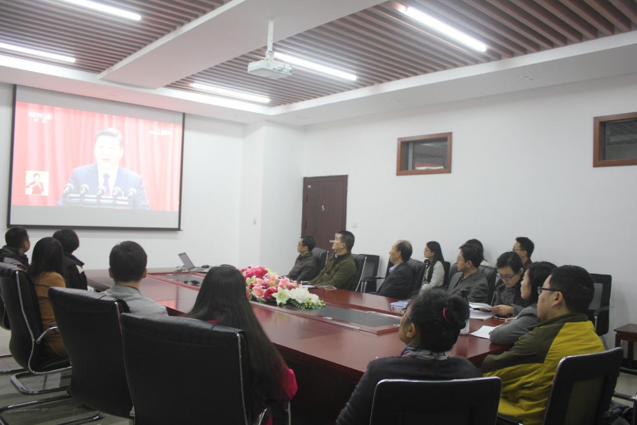 在收看报道的过程中,整个会议室秩序井然。每位同志都聚精会神,不少同志边看边记录,不时为习近平总书记的报告所打动,所鼓舞。开幕式后,按照工作安排,各支部迅速开展了学习讨论。