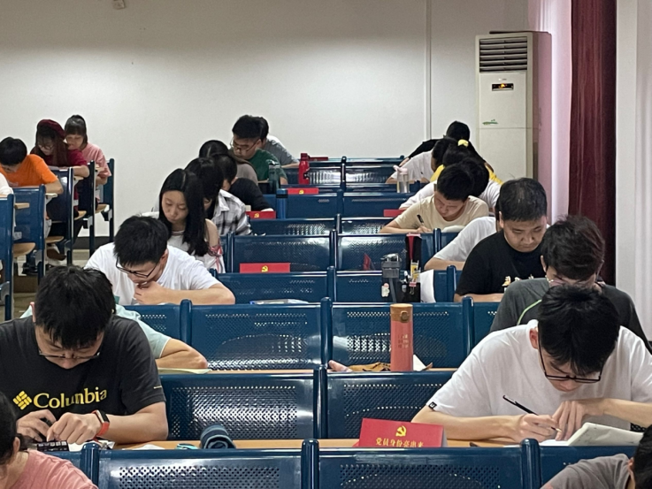 党旗领航,争做先锋。公司开展“亮身份、作表率、树新风”员工党员诚信考试挂牌活动。员工党员在考试中佩戴党徽和党员袖章,放置诚信考试座签,亮出党员的身份和责任,进一步强化员工党员的规矩意识和自律意识,同时充分发挥党员示范引领作用,带动广大同学自觉遵守考试纪律,营造出诚信考试的良好氛围。