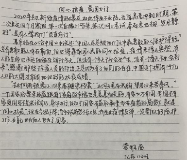 所思所感所悟。惊心动魄的抗疫大战和艰苦卓绝的历史大考,见证了中华民族的精神伟力。此次“同心抗疫,爱国力行”主题系列活动让化药学子感受到了伟大的中国速度、中国力量和中国精神。每个员工都有所触动,我们一起来看看大家的所思所感吧。