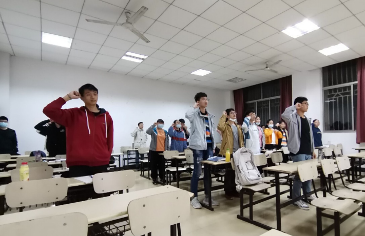 集体庄严宣誓。主题团日班会上,团支书带领着全班同学宣誓。同学们集体起立,右手握拳,庄严地许下自己的诺言:“我将严格遵守当地有关部门关于疫情防控的各项规定,听从公司安排,保持联络通畅,非必要不外出,勤洗手,戴口罩,积极配合,每日定时汇报健康情况,为新学期做好合理安排和规划,发奋学习,提升自己,抗疫有我,以身践行,彰显当代老员工的责任与担当。”