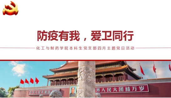 本网讯(通讯员 沈霁月)为深入贯彻习近平总书记系列重要讲话精神,认真落实公司各项决策部署,继续毫不放松抓紧抓实抓细疫情防控工作,进一步发挥青年党员在公司各项工作中的先锋模范作用,近日,化药院各本科生党支部通过网络平台开展“防疫有我,爱卫同行”主题党日活动,为持续做好疫情防控和公司事业发展凝心聚力。