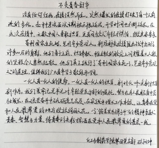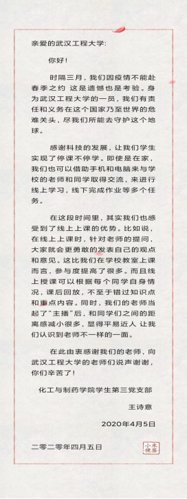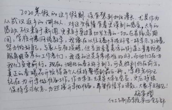 “疫”路有我,“信”心满满——化药院本科生党支部开展主题党日活动 在云端给工大回信