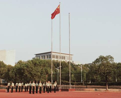七点整,旗手们迎着朝阳,迈着整齐的步伐,以饱满的热情,护送国旗至升旗台。伴随国歌的旋律,全体师生庄严注视着五星红旗缓缓升起,心中充满着自豪和敬意。