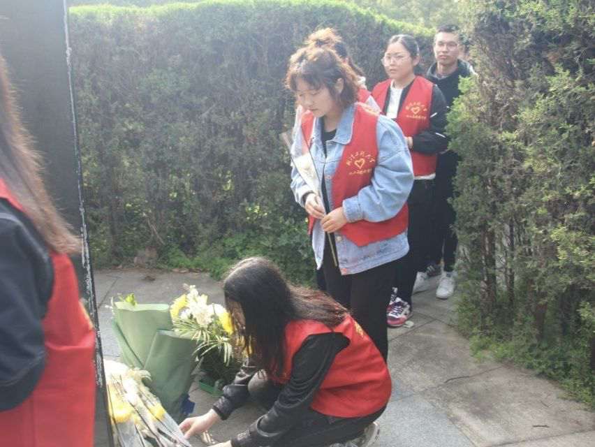 活动最后,各位同学迈着沉重的步伐,怀着崇敬的心情,走向许志伟学长墓前,为英雄墓敬献鲜花。