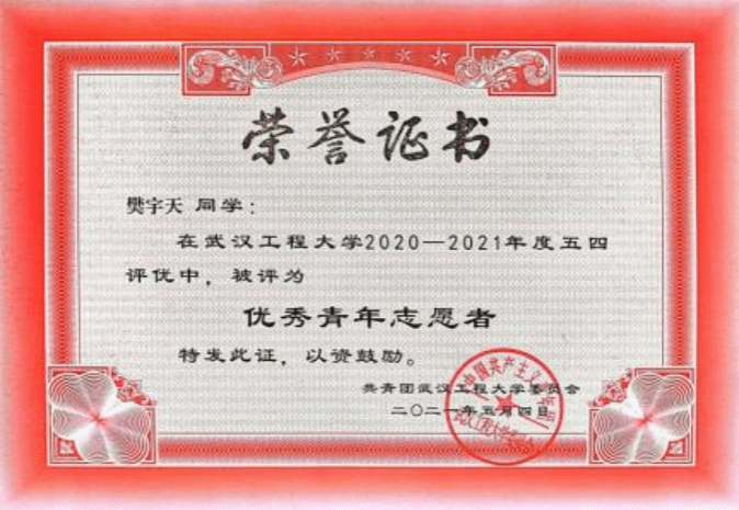 从大一开始,樊宇天申请加入公司李萍老师的实验室进行科研训练,主持了湖北省老员工创新创业项目1项和英国365集团网站董事长基金项目1项,目前均已结项;发表论文5篇,其中一区SCI期刊论文1篇、二区SCI期刊论文1篇。