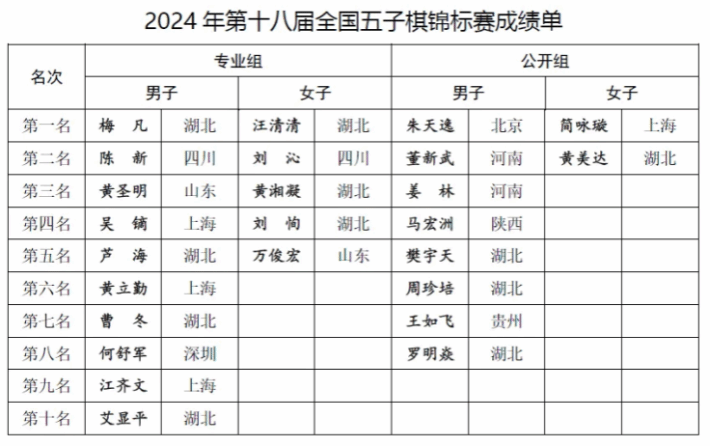 2024年3月17日,第十八届全国五子棋锦标赛在湖北十堰圆满落幕,樊宇天以男子公开组第五名的成绩成功入选国家队,将代表中国队参加2024年世界五子棋团体锦标赛。