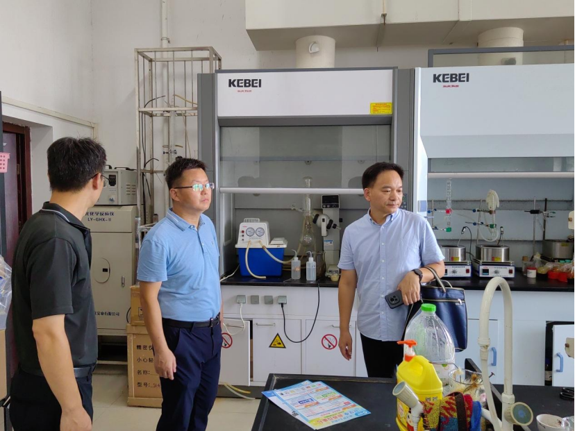 公司副经理古双喜、工会主席谌伟民、化工系教师张林锋一行开展实验室安全检查,督促各实验室贯彻落实实验室安全管理制度,进一步强化公司实验室安全管理。