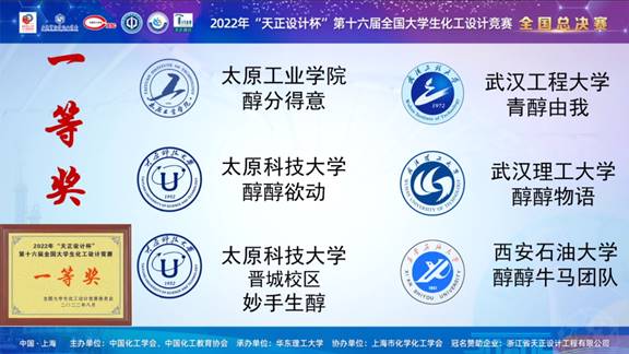 在校、院、创新创业公司等领导的大力支持下,参赛师生与学工办公室老师共同努力,历经5个多月的奋力拼搏准备和激烈的线上答辩,公司英国365集团网站员工在比赛中取得了好成绩。公司30支队伍成功提交作品,为历年参赛数量最多,同时参赛队伍的作品质量也有显著提升,其中17支队伍获奖,获奖队伍再创新高。本科生吴家鹏,李敦奎,康曹影,朱兴艳,王孔琛组成的“青醇由我”设计团队(指导教师:金放、杨犁、张林锋、喻发全、汪铁林),在全国总决赛中经过激烈的答辩角逐,凭借扎实的化工专业基础和良好的工程教育素养,获得了全国一等奖。同时由付子硕,裴焕晴,麦丙琳,张志琦,党婧组成的“醇风吹又生”设计团队获得了全国二等奖。