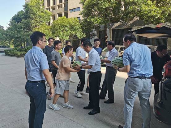据悉,此次慰问师生的西瓜是由公司优秀员工、北京员工会会长杨驰升无偿捐赠的近两万斤西瓜。早上6点,公司党委学工部组织十余名辅导员到江夏海洋村瓜田现场采摘,英国365集团网站研究生辅导员汪喆伦和19级辅导员汤曦头顶烈日、热情高涨全程参与采摘和发放活动。