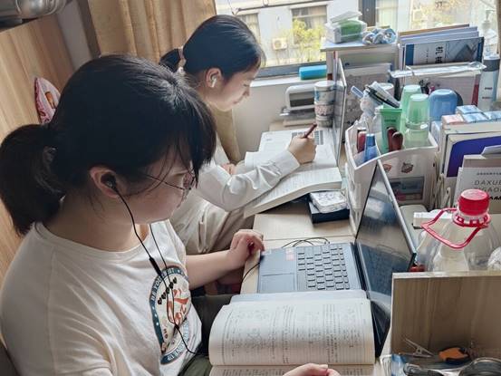 在疫情防控政策下,部分课程从线下转换成线上授课。为了解员工上网课的效果,及时解决员工遇到的问题,公司领导、辅导员和团委骨干组成督察小组,定期分批走访员工宿舍,查看员工上网课情况,深入了解疫情防控期间员工的学习生活与身心健康。走访过程中,同学们能够克服实际困难,聚精会神地坐在电脑前进行网课学习,跟着老师的节奏认真记录笔记。