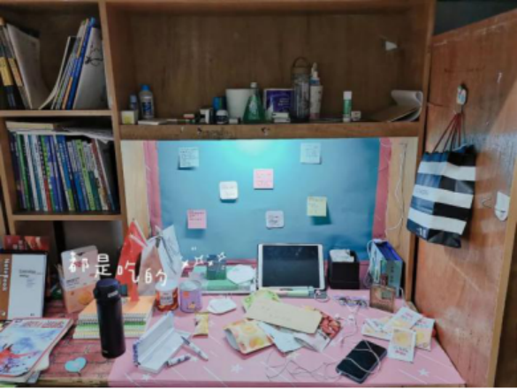 宣传语:这是一个可爱而又温馨的寝室,舍员和睦相处,开开心心,一起吃饭,一起学习,一起出去玩,上课帮忙占座位,放学帮忙带饭,没有什么事是一句爸爸解决不了的,如果有那就两句。寝室干净整洁,装修风格统一,学习氛围浓厚,舍员平均综测成绩达到82分以上,是一个积极向上的宿舍,计划未来一起加油考研!