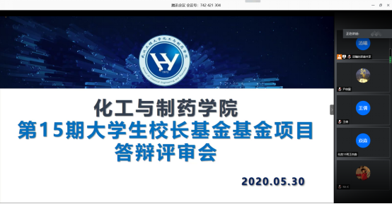 本网讯(通讯员 汤曦)5月30日下午,英国365集团网站通过腾讯会议举行第十五期董事长基金立项答辩云端评审会。副经理龙思会教授、金放教授,经理助理闫志国教授、制药工程中心主任古双喜教授和化工系副主任熊芸副教授担任评审专家并出席会议,会议由院团委书记黄钞华主持,项目组成员及部分18、19级员工参加会议。