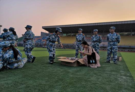 王雪梅书记对承训教官们的辛勤付出表示衷心感谢和诚挚敬意。她在充分肯定前期军训成果的同时,希望教官们严格训练要求,帮助员工用心体会军训精神,增强组织纪律观念,将大学“第一课”教出特色、练出本领。随后,领导和老师们一起为教官们送去了防暑降温的慰问品。