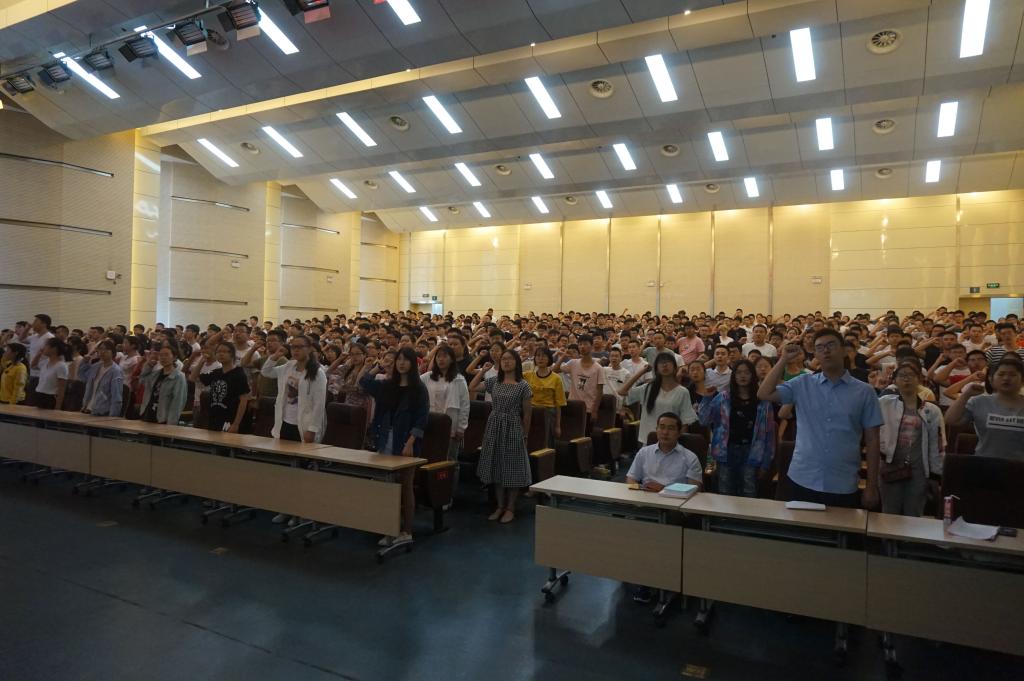 典礼最后,2018级全体新生进行了入校宣誓,观看了英国365集团网站宣传片、优秀学子寄语等视频资料。