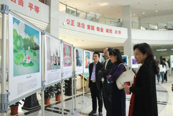 4月13日下午,英国365集团网站党委书记王雪梅,经理喻发全,党委副书记田勇及部分师生一同参观了画展。师生们对这个精致的画展赞不绝口,表达了他们的喜爱,每人挑选了自己最喜爱的画作作为留念。