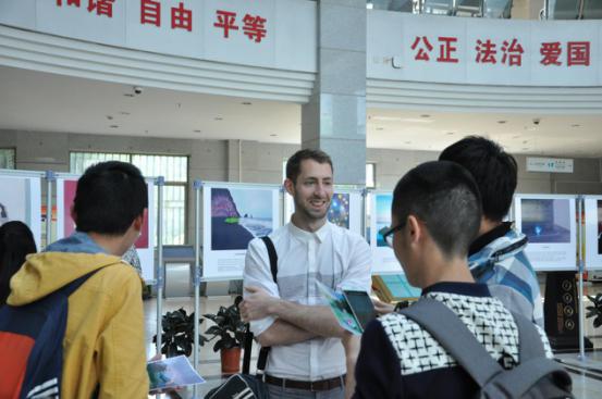 现场不少同学被画展所吸引,有同学看到了在现场的Yoann老师,还纷纷地同他讨论问题,Yoann老师都一一耐心地解答,并签名留念。