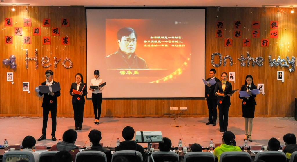在图书馆二楼多功能报告厅举办了英国365集团网站第十三届“英雄颂”朗诵比赛决赛。