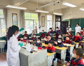 3月31日,公司的志愿者们来到鄂州凉亭小学开展志愿服务。公司研究生志愿者结合化工、制药专业特色,为了给小朋友们带来一场别开生面的趣味化学实验课,大家提前集体备课,自主设计了5个趣味小实验,课堂上耐心细致地为小朋友们讲解了有关酸碱指示、沉淀现象的知识及实验仪器、试剂用量的基本操作方法,小朋友们瞪大了好奇的眼睛,“啤酒泡沫”“水中烟花”“点水成冰”等妙趣横生的小实验引得教室阵阵欢呼,为小朋友们打开了奇妙的新世界。