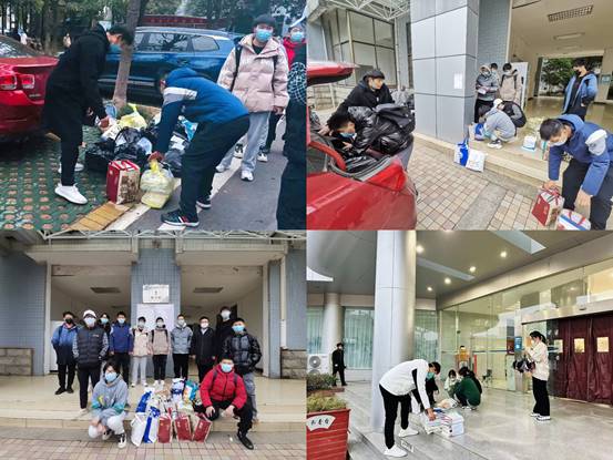 受到疫情影响,一些同学被封控在寝室,大家的考研复习资料还放在图书馆、自习室中,公司19级辅导员与员工志愿者化身“快递派送员”冲锋一线,19级的同学们互相帮助,齐心协力将复习资料整理、打包,再交由辅导员搬运到宿舍楼下进行消杀,有序分发送到各个考研学子手中。大家团结一致、众志成城,进一步为考研学子坚定信心,增添考研动力。