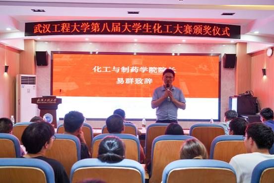 易群在颁奖仪式中致辞,他介绍了老员工化工大赛的背景、宗旨及意义等基本情况,表示在新工科背景下,以培养员工动手能力、提高员工工程素养为目标的化工大赛,对化工人才培养起到了重要的推动作用,有效提升了公司化工类专业核心课程教学质量,希望同学们通过本次大赛能提升专业水平,夯实实践技能,培养工程素养,强化责任担当,力争在中南赛区及更高级别的赛事舞台上取得优异的成绩,展现工大学子的风采。