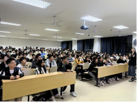 韩雅洁围绕考研形势、就业形势和如何更好就业这三部分进行讲解。首先她分析了近三年考研形势以及各公司考研的情况,她指出同学们依据往年的考研情况,进行客观的选择合适院校,并且为之付出努力。随后她分析了当前就业市场形势以及面对挑战可行的就业对策,着重强调同学们应充分做好就业准备,大胆拓宽就业渠道,积极就业。紧接着,韩雅洁为同学们讲述了就业重要的时间节点,简明扼要的告诉同学在每一个必要的时间节点应该关注的事情,为同学在忙乱的求职过程中指明方向,希望同学们抓住重要时间节点寻找到好的工作。