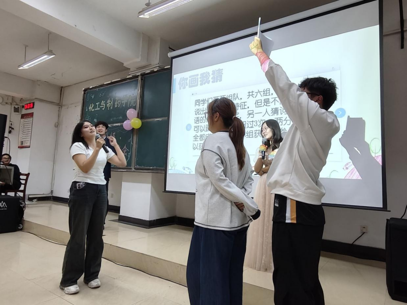 游戏环节,“歌曲猜猜猜”小游戏将现场活动氛围推向高潮。”正话反说”、“没完没了”的奇妙答案让同学们忍俊不禁,“数字炸弹”、紧张刺激的比赛过程让同学们屏息凝神。现场的老师和嘉宾们也纷纷加入其中。
