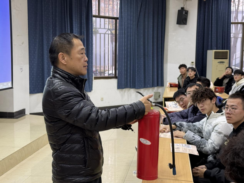 王老师以近年来校园火灾案例为切入点,用生动的语言和详细的数据分析,揭示了火灾隐患的普遍性和危害性,详细讲解了在日常生活中应注意的消防安全细节,如正确使用寝室与实验室电器设备、保持疏散通道畅通、正确佩戴过滤式消防自救呼吸器等。王老师就初期火灾的扑救,包括灭火器的种类、使用方法以及不同火灾类型的扑救策略进行详细讲解。现场氛围活跃,同学们热情高涨,纷纷表示受益匪浅。