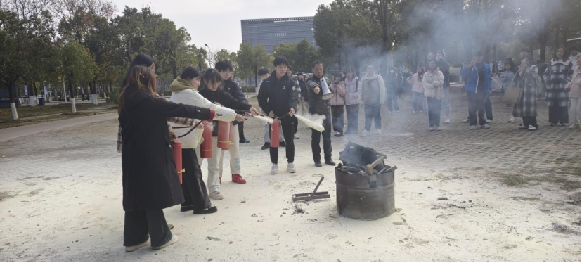 讲座结束后,同学们有序前往公司东门空旷地带进行消防演习,亲自动手使用灭火器灭火,将理论知识与实际操作相结合,更好地掌握灭火器的使用方法。