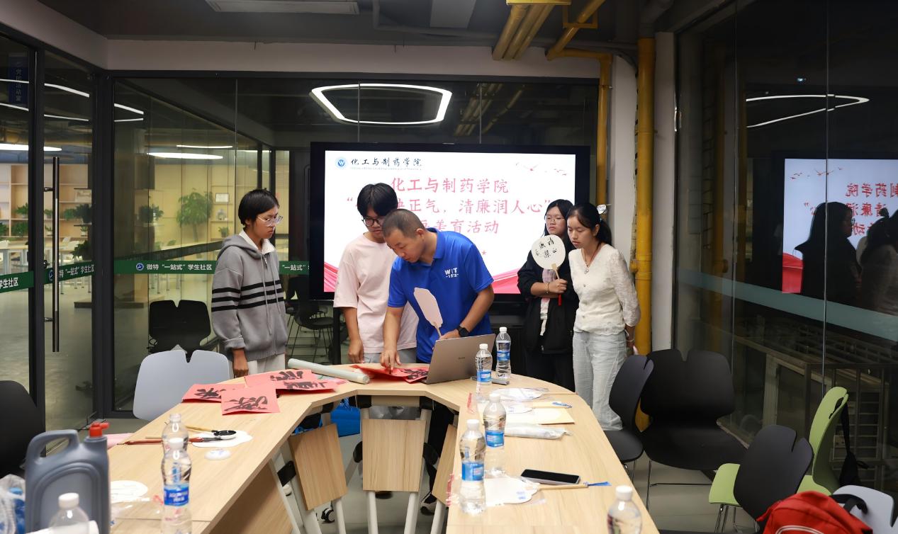 在廉洁文化书画作品介绍活动中,张列罡先集中展示了多幅廉洁文化艺术作品,既有以廉洁古诗词为内容的书法创作,也包含主题鲜明的廉洁文化绘画作品。随后张列罡围绕“廉洁文化作品书写”展开专题指导与示范,他结合不同书体的特点,详细讲解了廉洁文化主题不同书体作品的书写技巧与创作要点,并现场挥毫书写廉洁文化诗词,直观展示创作过程。示范结束后,同学们彼此交流书写心得、相互指正提升,在亲身体验与互动研学中,将廉洁理念与艺术实践深度融合,让清廉之风浸润身心。