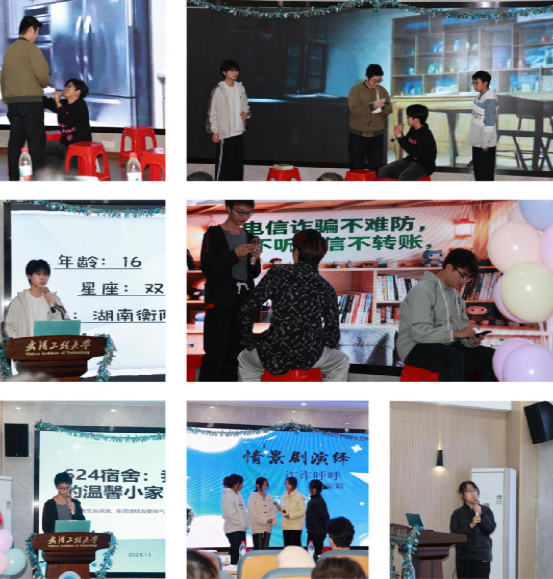 经过前期初赛的层层筛选与线上线下投票,共有9支寝室队伍脱颖而出,成功晋级决赛。本次决赛设置PPT风采展示与寝室才艺展演两大环节,各参赛寝室通过PPT生动呈现成员风采、共同制定的寝室规章及展示温馨整洁的居住环境。才艺展演环节亮点纷呈,各寝室精心选曲、默契合唱,用悠扬歌声传递同窗情谊与青春活力。此外,部分寝室还创新演绎了安全消防与防诈骗主题小品与情景剧,为活动增添了实用价值与教育意义。