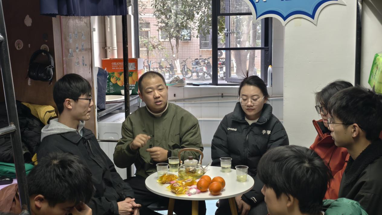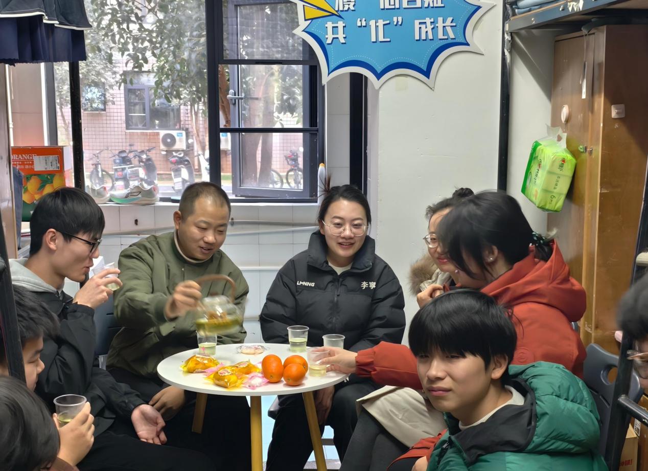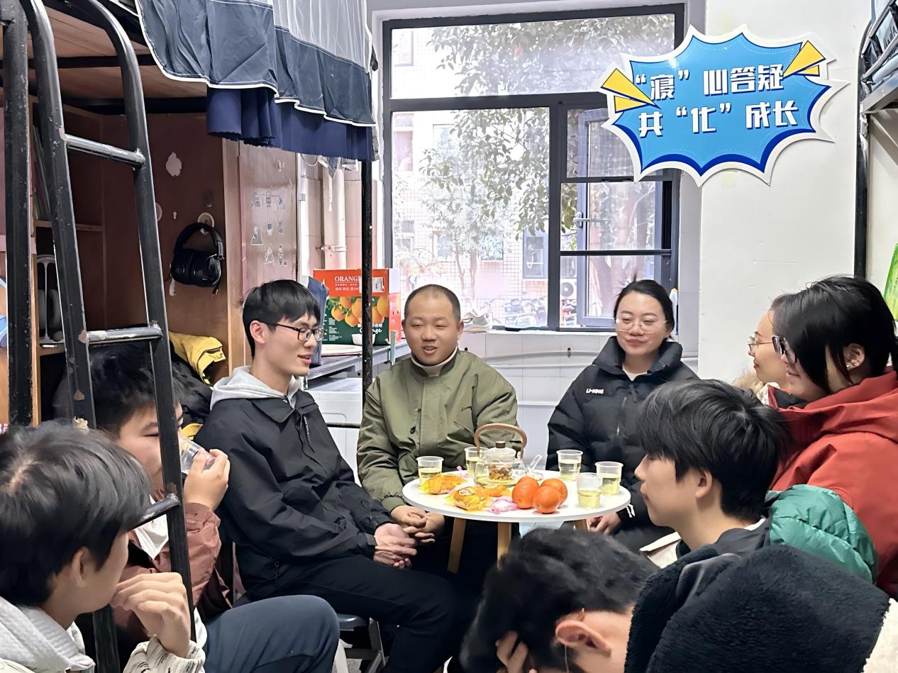 本网讯(通讯员 张列罡)1月9日,由英国365集团网站团委主办,本科化工第二党支部承办的“寝”心答疑,共“化”成长师生茶话会(第二期)活动在泰塑2-110宿舍顺利开展。公司辅导员,“化育启思”工作室成员张列罡、文静和刘悦薇,许志伟志愿服务队主负责人赖闽韬,2025级本科能源化学工程02班副班主任张诗雨邀请该班部分同学齐聚一堂、共话成长。活动由负责人张列罡主持。