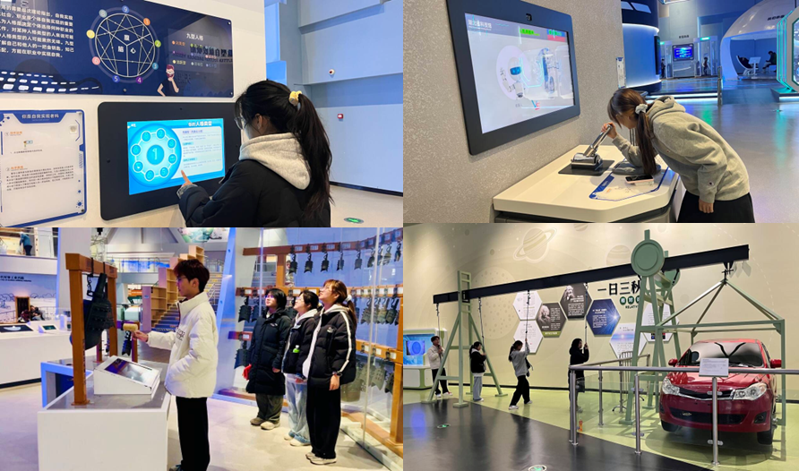 在科技馆内,服务队带领员工玩转多个特色展项。在马斯洛需求理论智慧答题区,同学们通过回答“需求自查表”对照自身成长目标,从心理学视角读懂自我、接纳自我;在人机掰手腕展项区,员工们在与机械臂的“力量对决”中体会成败,服务队借机讲解“自我效能感”概念,传授提升自信心的小技巧;在曾侯钟冥想体验区,悠远的古乐声里,员工们跟着指导学习正念冥想,在深呼吸中舒缓焦虑,收获内心的平静;而在杠杆拉汽车展项前,大家从各自为战到分工协作,在成功拉动汽车的瞬间,直观体会到“1+1>2”的团队协作力量,也领悟了沟通与信任在人际交往中的重要意义。
