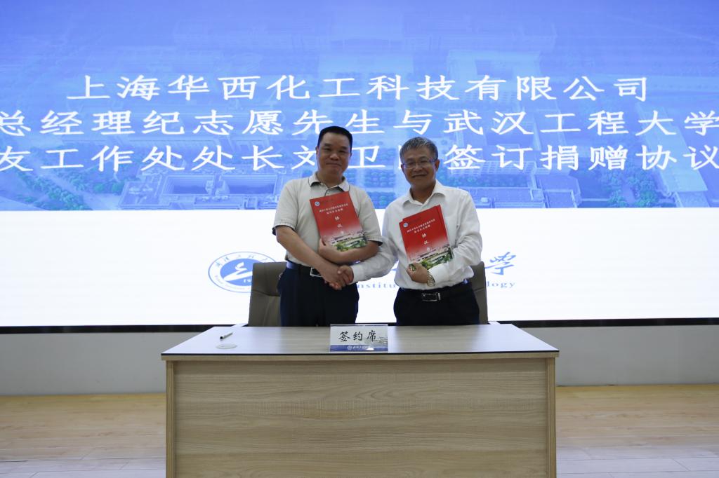 仪式上,员工工作处处长、教育发展基金会秘书长刘卫民代表基金会与纪志愿总经理签订了捐赠协议。正校级干部叶芃、公司党委书记王雪梅分别向纪志愿总经理颁发了捐赠证书和客座教授聘书。机电公司党委书记董光尚宣读了2018-2019学年度“上海华西科技”奖助学金获奖名单。