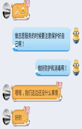 勇于责任担当,当好疫情防控的引导员全国各地正在实施网格化、地毯式严格管理,面对严峻的疫情形势,辅导员们及时传达党和国家及教育行政部门、公司有关疫情防控的最新要求和科学防护知识,引导员工关注疫情,带头做防控知识的传播者、疫情谣言的制止者、健康校园的守护者,不造谣、不信谣、不传谣,帮助员工提高责任意识和防护意识,切实加强疫情防控政策宣传和思想政治舆论引导;呼吁员工响应号召,积极协助居住地有关部门做好疫情防控工作,做好自身安全防护工作,外出佩戴口罩、勤洗手,尽量减少外出、不去人员密集、空气不流通的公共场所,杜绝不必要的聚会聚餐、外出游玩等活动,切断病毒传播途径;提醒大家加强自身健康管理,养成良好的卫生习惯和生活方式,增强个人体质,提高自身免疫力,保持健康的生活和心态。