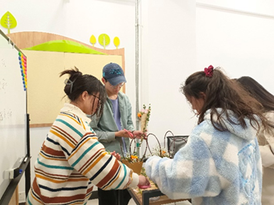 插花的过程是与心灵对话的过程。同学们将手中的花卉修剪后有层次地搭配在一起,用心制作属于自己的花篮,创造出独一无二的作品,在感受美、欣赏美、创造美的插花过程中愉悦了身心,舒缓了压力。