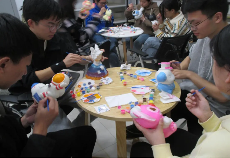 插花的过程是与心灵对话的过程,同学们在感受美、欣赏美、创造美的插花过程中愉悦了身心,舒缓了压力;绘画是表达生活美的一种艺术形式,手绘让同学们自由发挥灵感,用画笔描绘心灵,既享受创作的乐趣,又在涂鸦中释放压力;同学们利用落叶、落花、枯枝等自然物作为原材料进行装饰画创作,以落叶为笔,让自然和创意相互碰撞,从大自然中获取积极的能量。心灵解压系列活动深受同学们的喜爱,丰富多样的手工制作激发员工对生活的热爱,营造积极上进、温暖和谐的校园文化氛围。