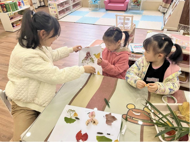 为培养同学们发现美、欣赏美、创造美,同时引导孩童们变废为宝、化腐朽为神奇,体会到环保和创作的意义所在,化药师生组织森林小镇幼儿园的小朋友们用落叶创作出一幅幅独特的树叶画。此外,公司心理工作站的同学们还对小朋友的作品进行“画语”解读,分析孩童们的内心世界、引导他们健康成长。