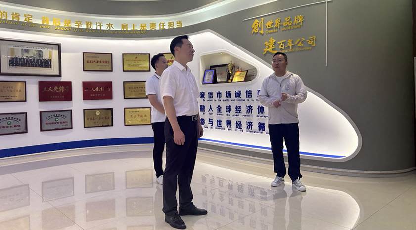 在总经理周航旭和技术总经理范宗清陪同下,杨海波书记一行前往公司经济厅、党建厅及企校共建暨技术合作厅等区域进行了参观与交流。