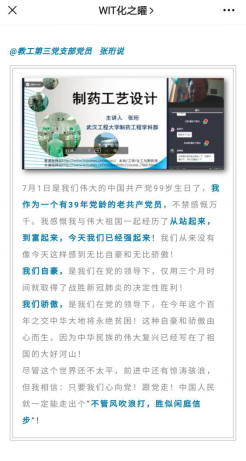 在庆祝建党99周年之际,响应公司党委开展常态化疫情防控“四个一”行动的号召,发挥基层党组织战斗堡垒作用和师生党员的先锋模范作用,公司党委于“七一”前夕,集中开展庆祝建党99周年“讲抗疫故事,向‘七一’献礼”主题系列微党课活动。