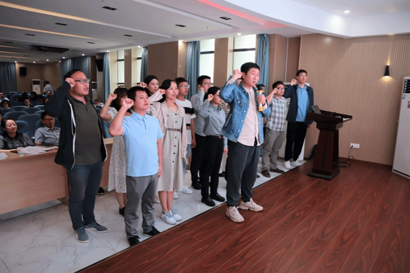 公司新进教师代表刘存成领誓,带领全体新入职教职工进行入职宣誓,全体教师在铿锵的誓词中进一步增强教师教书育人的责任感、使命感和荣誉感。