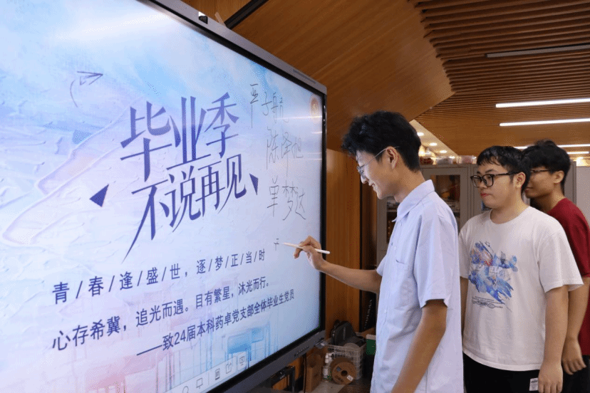 全体员工党员共同观看了党支部精心策划、制作的祝福视频,表达了全体党员对毕业生党员诚挚的祝福。毕业生党员也为支部留下签名与祝福。