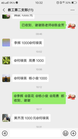 主题党日活动期间,各支部在微信群、QQ群发布相关倡议书后,公司党政领导班子、支部书记、老党员们带头响应,踊跃捐款支持疫情防控工作,青年党员教师们也第一时间向所在支部献出爱心,短短24小时之内,就累计捐款24000元,疫情以来,党员本人通过其它途径捐款18000元。截止3月4日,公司共计88名党员共计捐款42000元。党员教师们表示,大家隔离在家虽然不能亲赴战“疫”一线,但是仍然希望尽自己的微薄之力支援抗疫工作,将自己的微小爱心传递到抗疫一线的英雄们。
