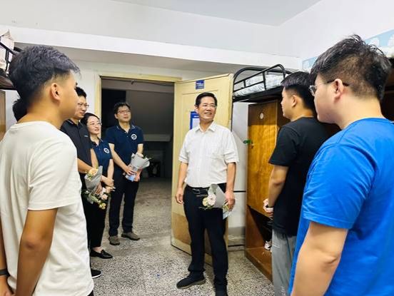 集团、公司领导分别走访新生宿舍,对新生表示欢迎,详细询问了同学们对住宿条件、生活设施、学习准备等方面的需求,并为新生详细解答相关疑问。提醒同学们要注意防范诈骗、保护好人身财物安全,有困难要及时向公司反映。鼓励大家树立积极的心态,在新的人生起点勤奋刻苦、勇敢拼搏、学有所获,以饱满的热情迎接大学新生活,争创新的佳绩。正值教师节,新生们对老师们的到来感到非常开心,并为老师们送上鲜花和祝福。