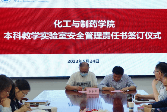 副经理金放与本科教学实验室责任人周霁签订公司本科教学实验室安全管理责任书。