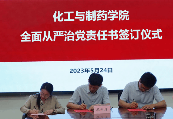 公司党委书记汪铁林、经理易群与三级单位代表制药制剂党支部书记、中心主任葛燕丽签订三级单位党风廉政建设责任书。