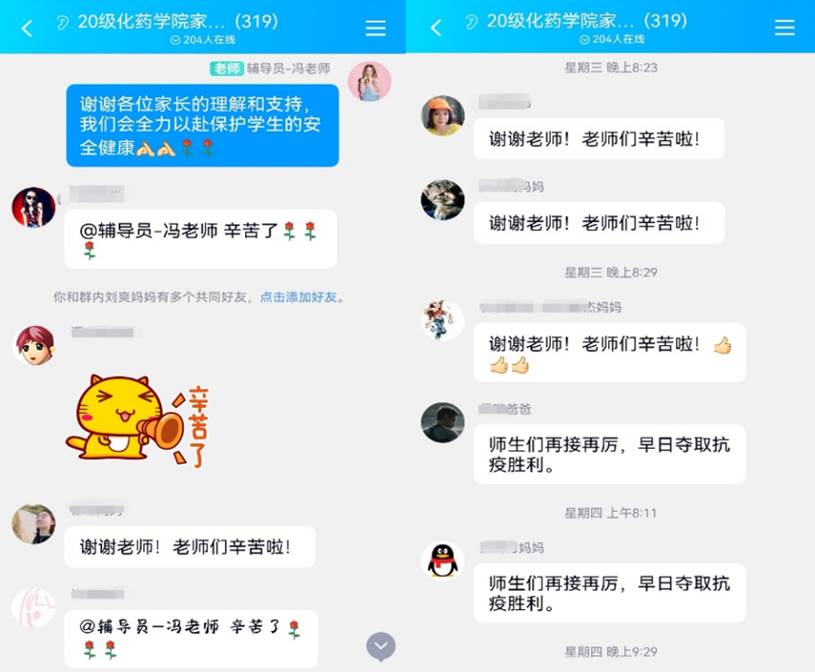 面对家长的问候,公司及时回答家长疑问,获得家长理解与支持,形成家校育人合力,凝聚抗击疫情的磅礴力量。