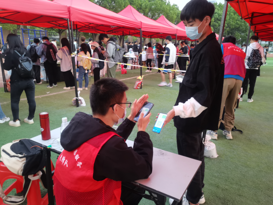 “请还未进行核酸检测的同学们,尽快前往核酸采样点进行检测,谢谢配合!”“请您佩戴好口罩,在一米线标记处有序排队……”核酸检测现场,许志伟志愿服务队的同学们始终坚守岗位,在现场,他们化身“宣传员”“督导员”,现场维护检测点秩序,叮嘱师生提高防范意识,做好自我防护,用担当构筑起抗击疫情的严密防线。